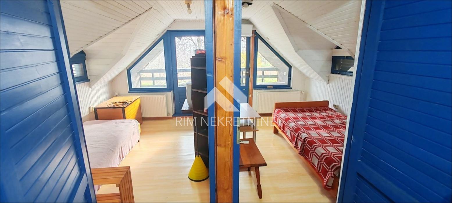 Sastoji se od prostrane dnevne sobe, velike kuhinje, trpezarije i kupatila u prizemnju. Na sprat (potkrovlje) vodi stepenište iz dnevne sobe i gore su dve male spavaće sobe koje imaju obe izlaz na terasu sa koje se pruža božanstven pogled na vrh Kosmaja. Ispod kuće je lep, suv podrum.